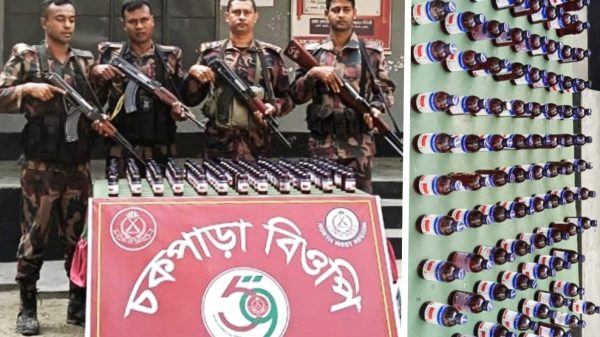 সীমান্তে ৫৩ বিজিবির পৃথক পৃথক অভিযানে ভারতীয় মদ, শাড়ী, চাদর ও ২টি গরু জব্দ