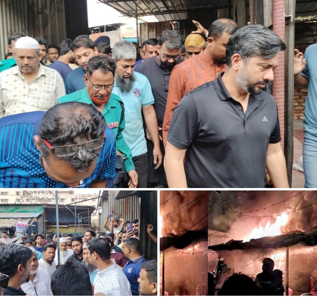 গত পরশু দিবাগত রাত ২:১৫ মিনিটে নগরীর ৩৯ নম্বর ওয়ার্ডের ইপিজেড মোড়ে অবস্থিত চৌধুরী মিনি সুপার মার্কেটে একাধিক দোকান ভস্মীভূত হলে আজ বিকেলে অর্থ মন্ত্রী আমির খসরু মাহমুদ চৌধুরীর সুযোগ্য সন্তান ইসরাফিল খসরু উক্ত অগ্নিকাণ্ডের ঘটনাস্থলে পরিদর্শন করেছেন।