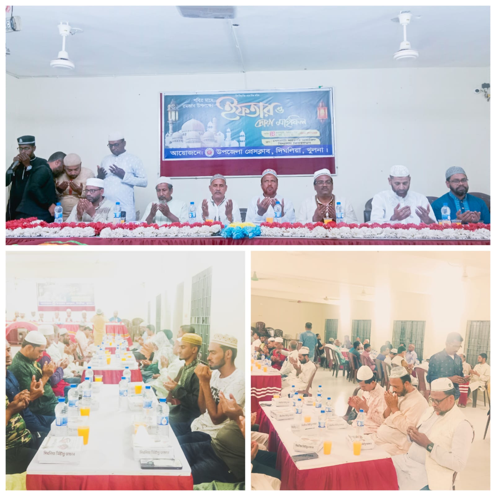 পবিত্র মাহে রমজান উপলক্ষে আজ দিঘলিয়া উপজেলা প্রেসক্লাব, দিঘলিয়া, খুলনা উদ্যোগে ইফতার ও দোয়া মাহফিল অনুষ্ঠিত হয়েছে। ধর্মীয় ভাবগাম্ভীর্য ও উৎসবমুখর পরিবেশে আয়োজিত এ অনুষ্ঠানটি অনুষ্ঠিত হয় সেনহাটি সরকারি মাধ্যমিক বিদ্যালয় মিলনায়তনে। ১২ রমজান ১৪৪৭ হিজরি, (২ই মার্চ ২০২৬) খ্রি., রোজ সোমবার বিকেলে অনুষ্ঠিত মাহফিলে স্থানীয় সাংবাদিক, রাজনৈতিক ও সামাজিক অঙ্গনের নেতৃবৃন্দ এবং সুধীজন অংশগ্রহণ করেন। মাহে রমজানের তাৎপর্য তুলে ধরে সংক্ষিপ্ত আলোচনা অনুষ্ঠিত হয় এবং দেশ, জাতি ও মুসলিম উম্মাহর শান্তি, সমৃদ্ধি ও কল্যাণ কামনায় বিশেষ দোয়া পরিচালনা করা হয়।