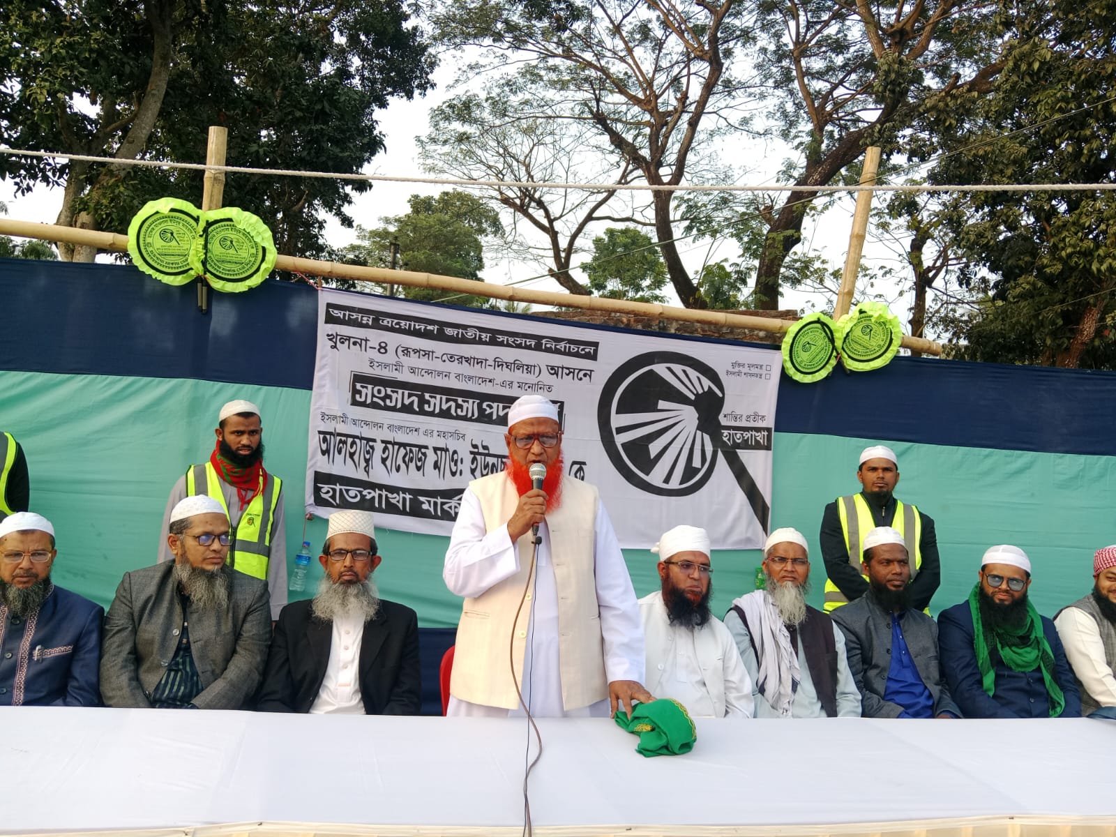 খুলনা-৪ আসনে হাতপাখার প্রার্থীর প্রচারণায় গুরুত্ব পাচ্ছে এলাকার গণমানুষের অধিকার সহ অধিকারসহ বিভিন্ন প্রতিশ্রুতি আসন্ন ত্রয়োদশ জাতীয় সংসদ নির্বাচনকে সামনে রেখে খুলনা-৪(দিঘলিয়া- তেরখাদা রুপসা) আসনে হাতপাখা প্রতীকের প্রার্থী প্রচারণায় শীর্ষে রয়েছেন। শুক্রবার (৩০ই জানুয়ারি) বিকাল ৪.৩০ মিনিটের খুলনা-৪ (দিঘলিয়া তেরখাদা -রুপসা) দেয়াড়া কলোনির বিভিন্ন ওয়ার্ড, পাড়া-মহল্লা ও বাজার এলাকায় ইসলামী আন্দোলন বাংলাদেশ মনোনীত (হাত পাখার) প্রার্থী আলহাজ্ব হাফেজ মাওলানা ইউনুস আহমাদ (কেন্দ্রীয় মহাসচিব) প্রধান অতিথি বক্তৃতায় নারীদের অধিকার, নিরাপত্তা,শিক্ষা, স্বাস্থ্যসেবা ও নৈতিক সমাজ গঠনে হাতপাখা প্রতীকের গুরুত্ব তুলে ধরেন।