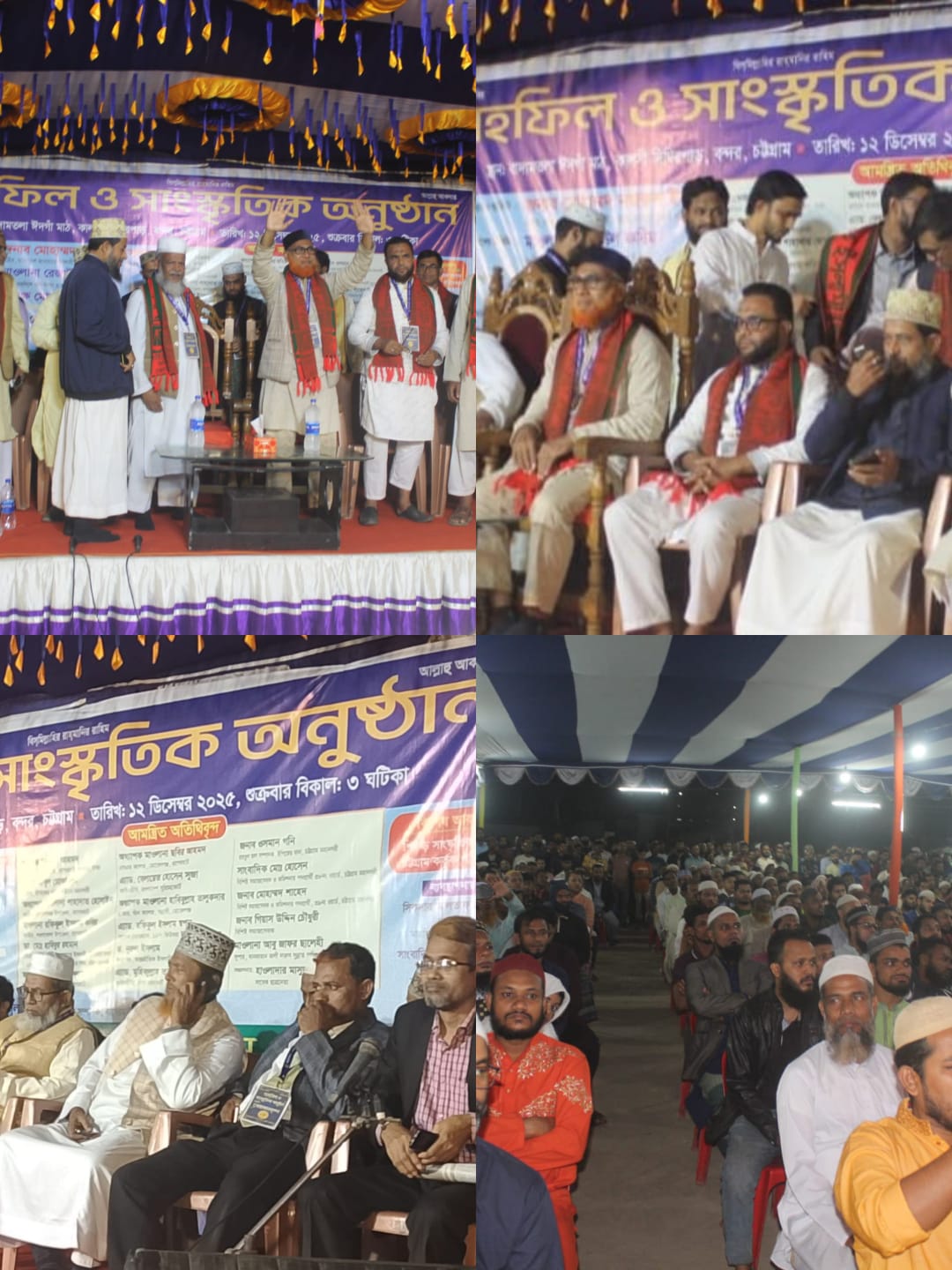 বাগেরহাট জেলা ফোরাম- চট্টগ্রাম'র উদ্যোগে চট্টগ্রাম মহানগরীর বন্দর থানাধিন ৩৮ নং ওয়ার্ড কলসী দিঘির পাড়াস্থ বাদামতলা ঈদগাঁ মাঠে ১২ ডিসেম্বর ২০২৫, জুমাবার 'মাহফিল ও সাংস্কৃতিক অনুষ্ঠান' সফলভাবে সম্পন্ন হয়। বাগেরহাট জেলা ফোরাম'র সাধারণ সম্পাদক এডভোকেট মো. জাহিদুল ইসলামের সভাপতিত্বে ও হাওলাদার মাসুদ পারভেজের সঞ্চালনায় এতে প্রধান অতিথি হিসেবে উপস্থিত উপস্থিত ছিলেন বাংলাদেশ জামায়াতে ইসলামী কেন্দ্রীয় মজলিসে শুরার সদস্য, বাগেরহাট জেলা আমীর মাওলানা রেজাউল করিম। প্রধান আলোচক হিসেবে আলোচনা রাখেন বাগেরহাট-৪ আসন থেকে মনোনীত জামায়াতে ইসলামীর সংসদ সদস্য প্রার্থী অধ্যক্ষ মো. আব্দুল আলিম।