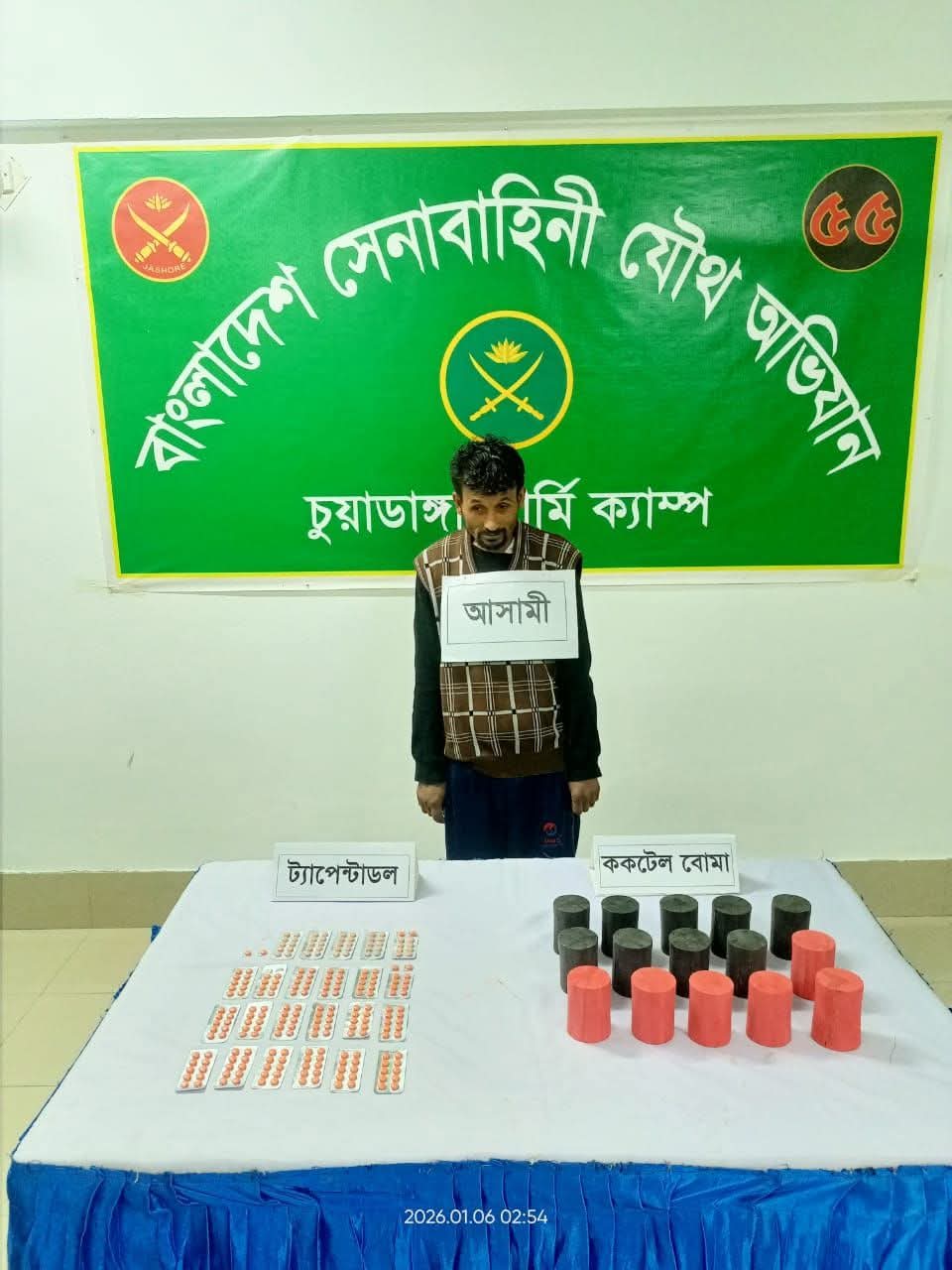 চুয়াডাঙ্গা সদর থানাধীন নুরনগর গ্রামে সেনাবাহিনী ও পুলিশের যৌথ অভিযানে ১৫টি ককটেল বোমা ও ২৩০ পিস টাপেন্ডাডল ট্যাবলেট উদ্ধার। অভিযান পরিচালনা করেন বিএ-১০৯৪৯ ক্যাপ্টেন সৌমিক আহমেদ অয়ন।