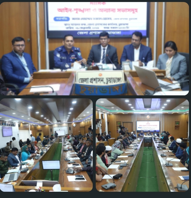 অদ্য ০৮ ফেব্রুয়ারি ২০২৬ ইং সকাল ১০:০০ ঘটিকায় জেলা আইন-শৃঙ্খলা কমিটি, আদালত সহায়তা, সন্ত্রাস ও নাশকতা প্রতিরোধ; মানব পাচার প্রতিরোধ; চোরাচালান নিরোধ সমন্বয়; সড়ক দুর্ঘটনা হতাহতদের নির্ভুল ও সমন্বিত পরিসংখ্যান প্রণয়ন; জেলা সড়ক নিরাপত্তা কমিটি; চোরাচালান নিরোধ; অনিস্পন্ন চোরাচালান মামলাসমূহ সম্পর্কে মনিটরিং সেলের সভা অনুষ্ঠিত হয়।