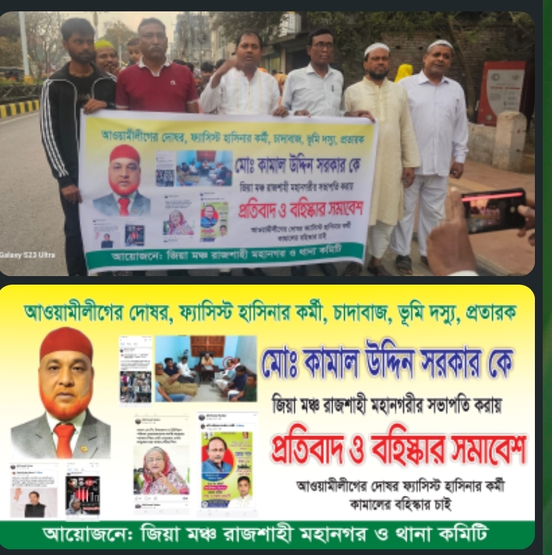 জিয়া মঞ্চ রাজশাহী মহানগরীর কমিটির সভাপতি আওয়ামী লীগের দোষর হাওয়ায় কমিটির এক অংশের প্রতিবাদ নির্বাচনের আগে জিয়ামঞ্চ রাজশাহী মহানগরীর কমিটি গঠিত হয় এই কমিটির সভাপতি হন কামাল উদ্দিন সরকার .তার বিরুদ্ধে আওয়ামী লীগের দোসর ,আওয়ামী লীগের নির্বাচনে ভোট চাওয়া, এবং বিভিন্ন ফেসবুক পোস্ট এর মাধ্যমে জানা যায় তিনি একজন আওয়ামী লীগের সক্রিয় কর্মী ছিলেন .তার এই আওয়ামী পন্থী দোসর হওয়ায় কমিটির একাংশ প্রতিবাদ করেছেন এবং বহিষ্কার চেয়েছেন. তার বিরুদ্ধে আরো অভিযোগ আছে তিনি কমিটির বিভিন্ন সদস্যের কাছ থেকে চাঁদা দাবি করে আসছিলেন. এজন্য কমিটির একাংশ প্রতিবাদ মিছিল করেছেন.