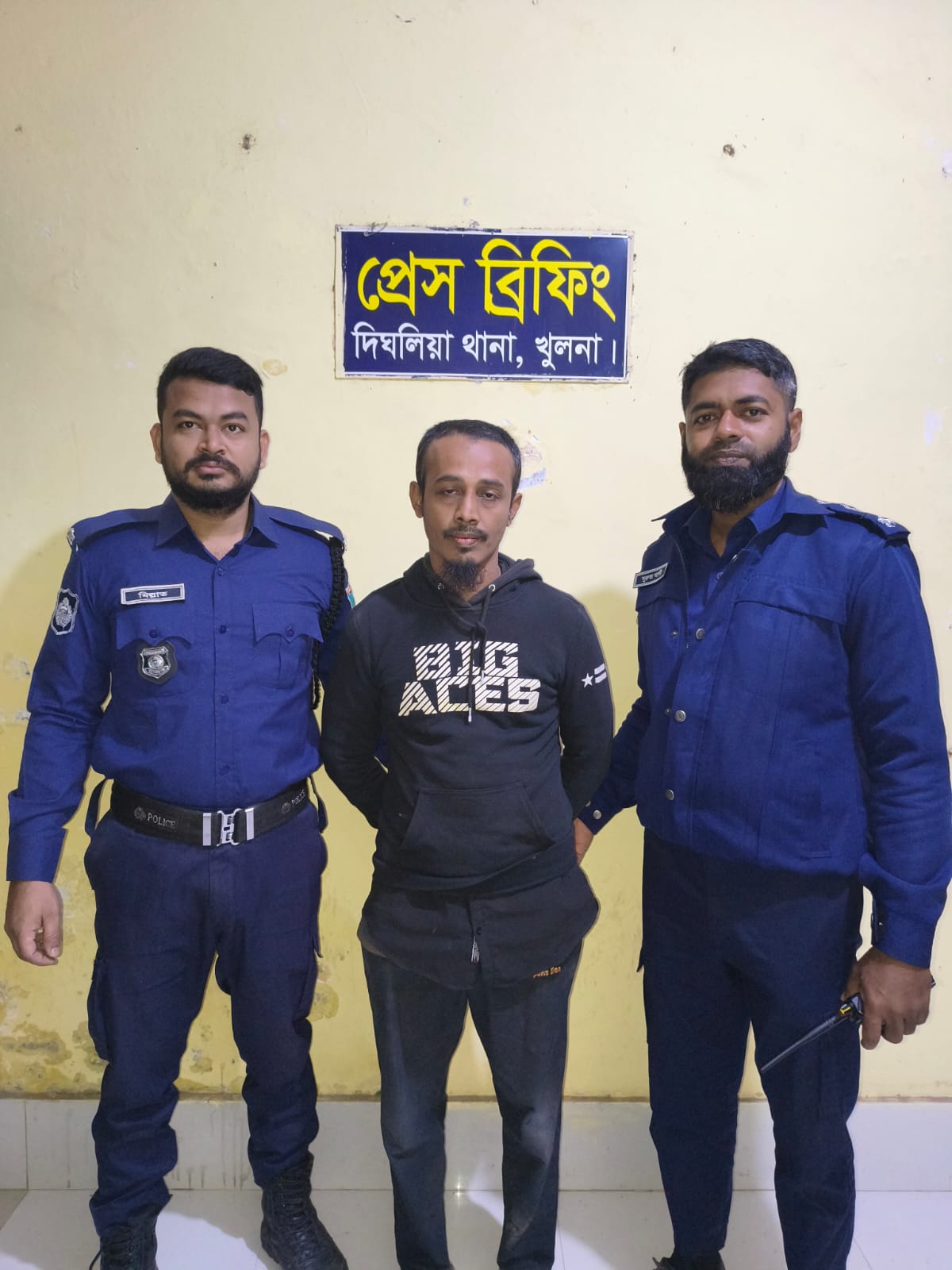 দিঘলিয়া থানা অফিসার ইনচার্জ (ওসি) মো: শাহ আলম এর নেতৃত্বে একটি আভিযানিক টিম দিঘলিয়ার গোয়ালপাড়া এলাকা থেকে উক্ত আসামি কে আটক করে।