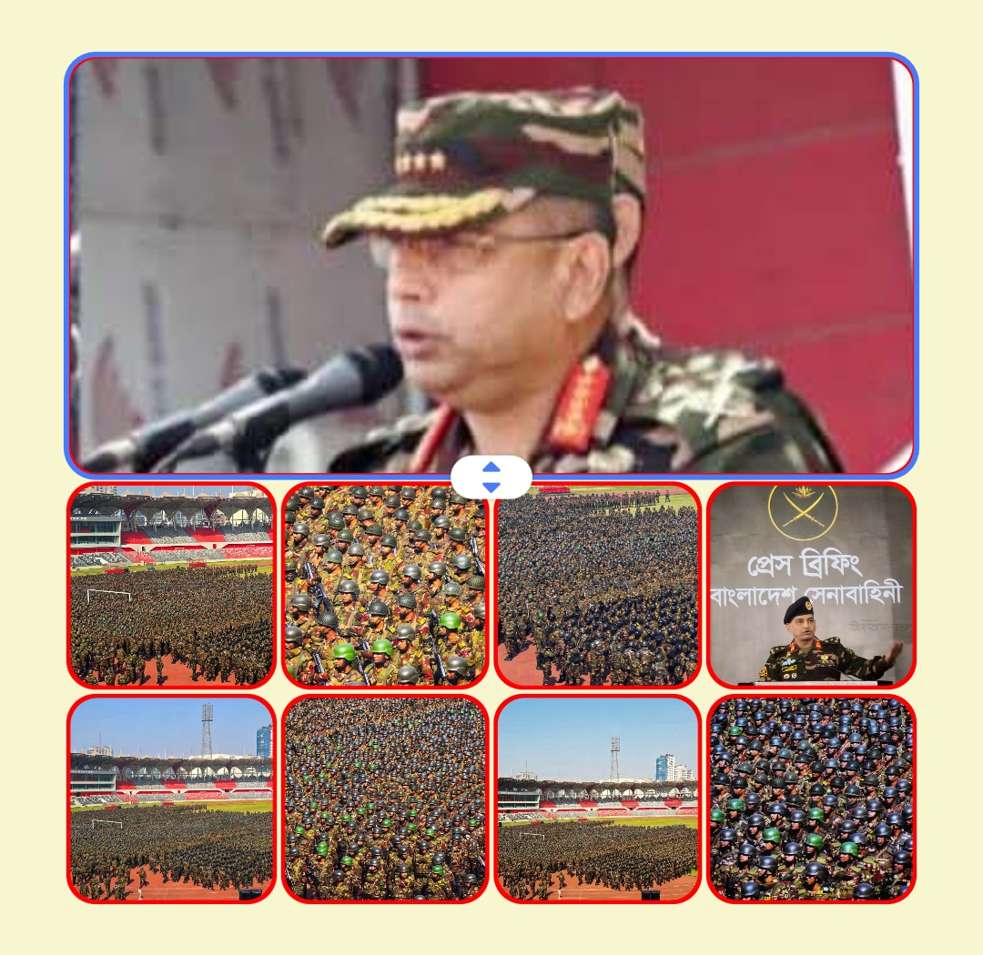 "আসন্ন নির্বাচন ও গণভোট যেন উৎসবমুখর ও শান্তিপূর্ণ পরিবেশে সম্পন্ন হয়, তা নিশ্চিত করাই সেনাবাহিনীর মূল লক্ষ্য।" — পরিদর্শন শেষে সংশ্লিষ্ট কর্মকর্তাদের উদ্দেশ্যে সেনাপ্রধান। পরিদর্শনকালে সেনাবাহিনীর উর্ধ্বতন কর্মকর্তাবৃন্দ এবং স্থানীয় ক্যাম্প কমান্ডারগণ উপস্থিত ছিলেন। মোতায়েনকৃত সদস্যরা সেনাপ্রধানের এই সরাসরি উপস্থিতিতে উজ্জীবিত বোধ করছেন এবং যেকোনো চ্যালেঞ্জ মোকাবিলায় দৃঢ় প্রত্যয় ব্যক্ত করেছেন।