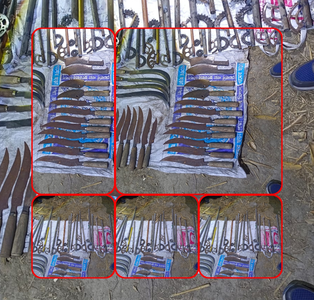 অপারেশন বইকুড়ি: মাঝরাতে র্যাবের অ্যাকশন গোয়েন্দা তথ্যের ভিত্তিতে শনিবার (০৭ ফেব্রুয়ারি ২০২৬) দিবাগত রাত ১১:৩০ ঘটিকায় সিপিএসসি, র্যাব-৫-এর একটি বিশেষ দল বাগমারা থানাধীন বইকুড়ি সরদারপাড়া এলাকায় হানা দেয়। নিস্তব্ধ রাত ভেঙে র্যাবের এই সাঁড়াশি অভিযানে অপরাধীদের গোপন আস্তানা থেকে বেরিয়ে আসে দেশীয় অস্ত্রের স্তূপ। কী কী উদ্ধার হলো? অভিযান শেষে জব্দকৃত অস্ত্রের তালিকায় রয়েছে রীতিমতো আঁতকে ওঠার মতো সরঞ্জাম। উদ্ধারকৃত মোট ৫৬টি অস্ত্রের মধ্যে রয়েছে! কুঠার সদৃশ টাঙ্গি! ৩২টি তীক্ষ্ণ ছুরি ১৬টি চাপাতি ৪টি হাসুয়া! ০৪টি র্যাব জানায়, নিরপেক্ষ সাক্ষীদের উপস্থিতিতে বিধি মোতাবেক এসব আলামত জব্দ করা হয়েছে।