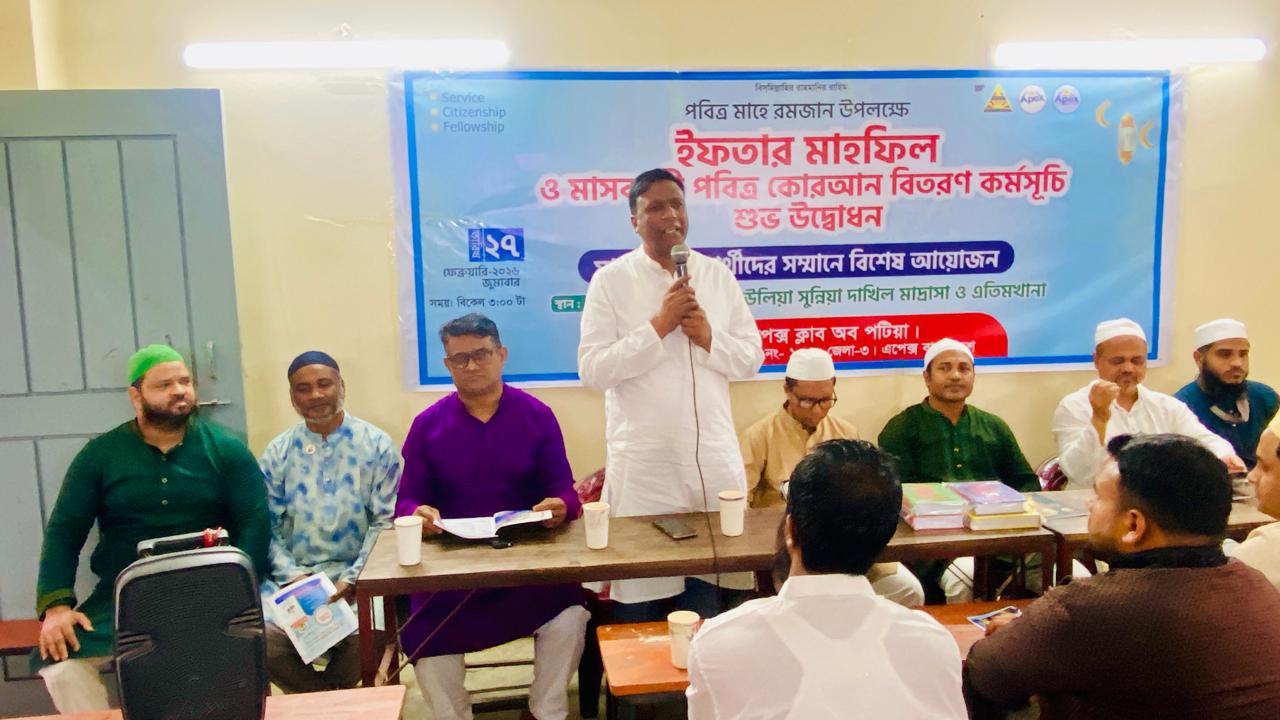 এপেক্স ক্লাব অব পটিয়ার উদ্যােগে পবিত্র মাহে রমজান উপলক্ষে শিক্ষার্থীদের নিয়ে ইফতার, মাসব্যাপী পবিত্র কোরআন শরীফ বিতরণ কর্মসূচির উদ্বোধন ও মরহুম অধ্যক্ষ মাওলানা কাজী আনোয়ারুল ইসলাম খাঁন (রহ.)এর স্মরণে বিশেষ দোয়া মাহফিল