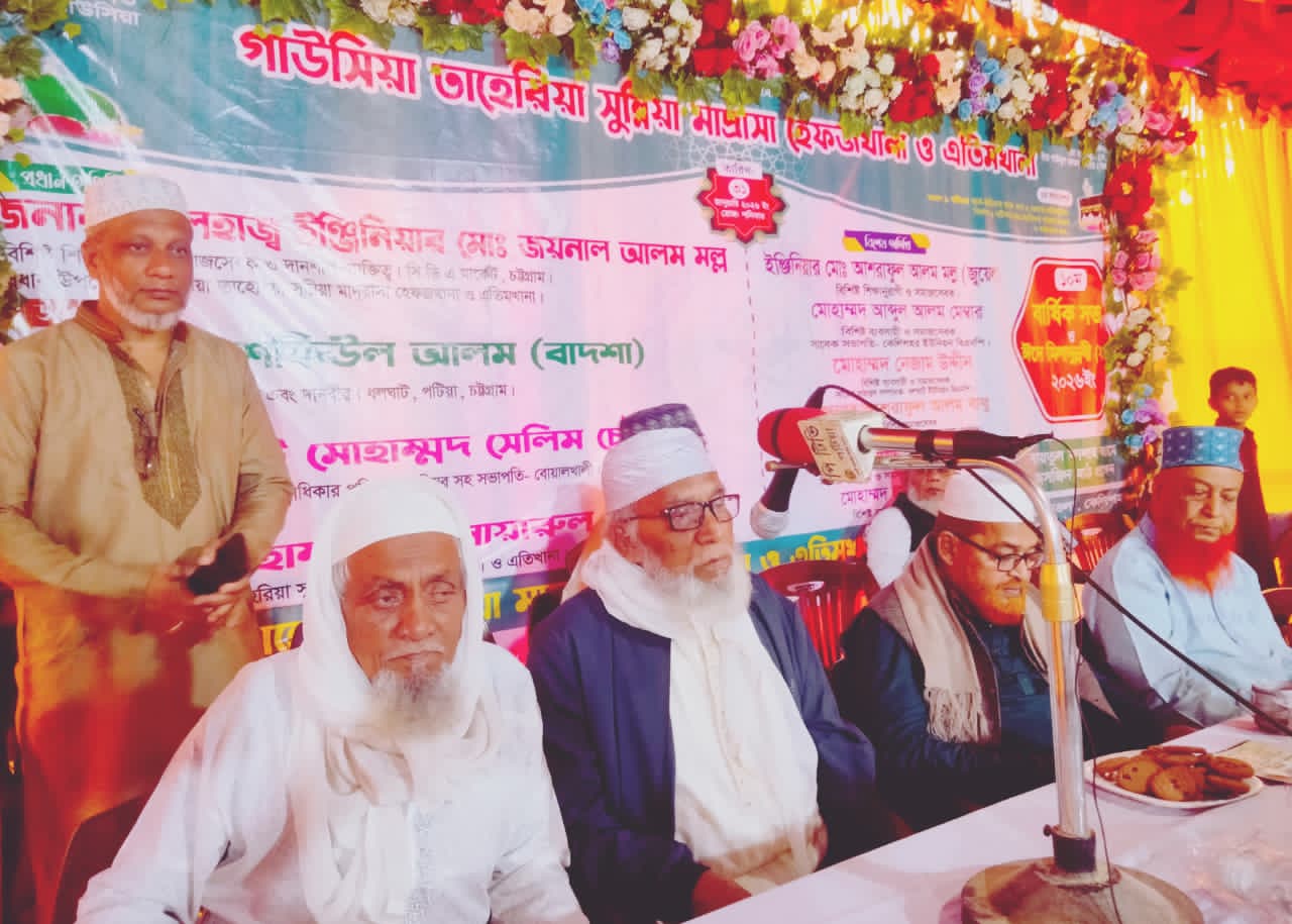 পটিয়া (চট্টগ্রাম) প্রতিনিধি: ৩১ জানুয়ারি শনিবার সকালে পটিয়া উপজেলার ধলঘাট ইউনিয়নে উওর সমুরায় আনজুমান- এ রাহমানিয়া আহমদিয়া সুন্নীয়া ট্রাস্ট পরিচালিত গাউসিয়া তাহেরিয়া সুন্নিয়া মাদ্রাসা হেফজ খানা এতিমখানার ১০তম বার্ষিক সভা ও ঈদে মিলাদুন্নবী (সা:) এবং ছাএ- ছাএীদের হামদ, নাত, কেরাত প্রতিযোগিতা প্রথম অধিবেশন অনুষ্ঠিত হয়। বিকালে দ্বিতীয় অধিবেশনে মাদ্রাসার শিক্ষার্থীদের মাঝে পুরস্কার বিতরণী অনুষ্ঠানে সভাপতিত্ব করেন গাউসিয়া তাহেরিয়া সুন্নিয়া মাদ্রাসার সভাপতি মোহাম্মদ আনোয়ারুল ইসলাম।