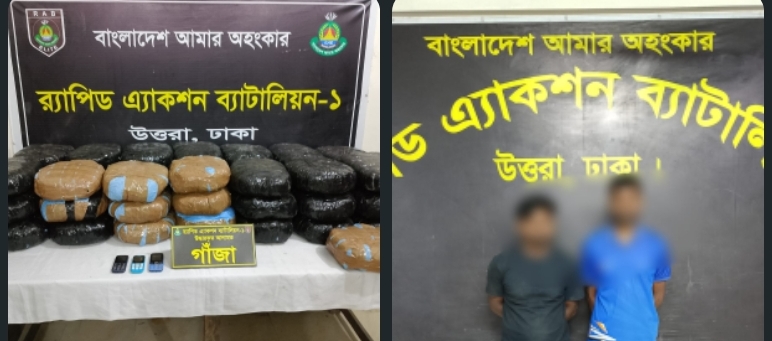 এরই ধারাবাহিকতায় ২৫ ফেব্রুয়ারি ২০২৬ ইং তারিখ আনুমানিক ২৩.৪০ ঘটিকায় র্যাব-১, উত্তরা, ঢাকা এর একটি আভিযানিক দল গোপন সংবাদের ভিত্তিতে জানতে পারে যে, ডিএমপি ঢাকার তুরাগ থানাধীণ কামারপাড়া ইস্ট ওয়েস্ট মেডিকেল কলেজ সংলগ্ন তাহের মোল্লা হোটেল এন্ড রেস্টুরেন্টের পাশে ভান্ডারীর মাঠের সামনে পাকা রাস্তার উপর ০১ টি কার্ভাট ভান যোগে মাদক দ্রব্য গাঁজাসহ ০২ জন মাদক ব্যবসায়ী অবস্থান করছে। প্রাপ্ত সংবাদের ভিত্তিতে আভিযানিক দলটি বর্ণিত স্থানে অভিযান পরিচালনা করে মাদক ব্যবসায়ী ১। মোঃ আব্দুল মালেক @ মালেক খলিফা (৪০), পিতা-মৃত আব্দুস সাত্তার, গ্রাম-খেপুপাড়া, থানা-কলাপাড়া, জেলা-পটুয়াখালী এবং ২। মোঃ রাসেল (২৮), পিতা-আমির হোসেন, গ্রাম-ধনিয়াগুটাউন, থানা-ভোলা সদর, জেলা-ভোলাদের’কে গ্রেফতার করা হয়। এ সময় ধৃত আসামীদের নিকট হতে ৮৬ কেজি মাদক দ্রব্য গাঁজা যার আনুমানিক মূল্য ২৫,৮০,০০০/-(পঁচিশ লক্ষ আশি হাজার) টাকা, ০১ টি BLUE/YELLOW রংয়ের ASHOKE LEYLAND ব্র্যান্ডের কার্ভাড ভ্যান, ০৩ টি বাটন মোবাইল ফোন এবং ০২ টি সীম কার্ডসহ উদ্ধার করা হয়।