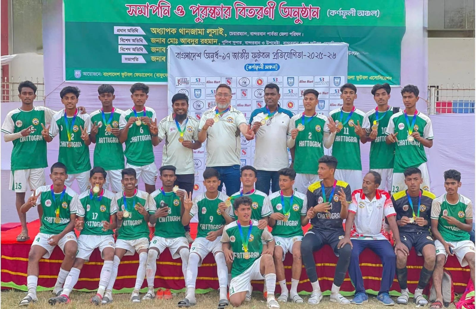 বাফুফের অনূর্ধ্ব-১৭ জাতীয় ফুটবল চ্যাম্পিয়নশিপ ২০২৫–২০২৬ এর কর্ণফুলী অঞ্চলের ফাইনাল খেলা, সমাপনী ও পুরস্কার বিতরণী অনুষ্ঠান বান্দরবানে অনুষ্ঠিত হয়েছে।