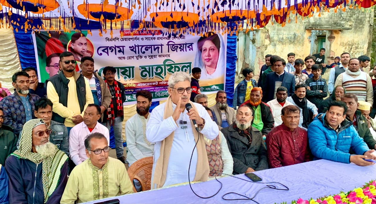 শুক্রবার পবা উপজেলার হরিপুর ইউনিয়ন বিএনপি ও এর অঙ্গ ও সহযোগী সংগঠনের উদ্যোগে বেগম খালেদা জিয়ার আশু রোগমুক্তি ও সুস্থতা কামনায় আয়োজিত দোয়া মাহফিলে প্রধান অতিথির বক্তব্যে তিনি এসব কথা বলেন। তিনি বলেন, “বেগম খালেদা জিয়া কখনো দেশ ছেড়ে যাননি। স্বৈরাচার সরকারের নির্যাতনে তিনি অন্ধকার কারাগারে দীর্ঘদিন বন্দি থেকে অসুস্থ হয়ে পড়েন এবং বর্তমানে চিকিৎসাধীন রয়েছেন। দেশের মানুষের দোয়ায় তিনি কিছুটা সুস্থ হয়ে উঠেছেন এবং এখনও দেশের মাটিতেই চিকিৎসা নিচ্ছেন।”