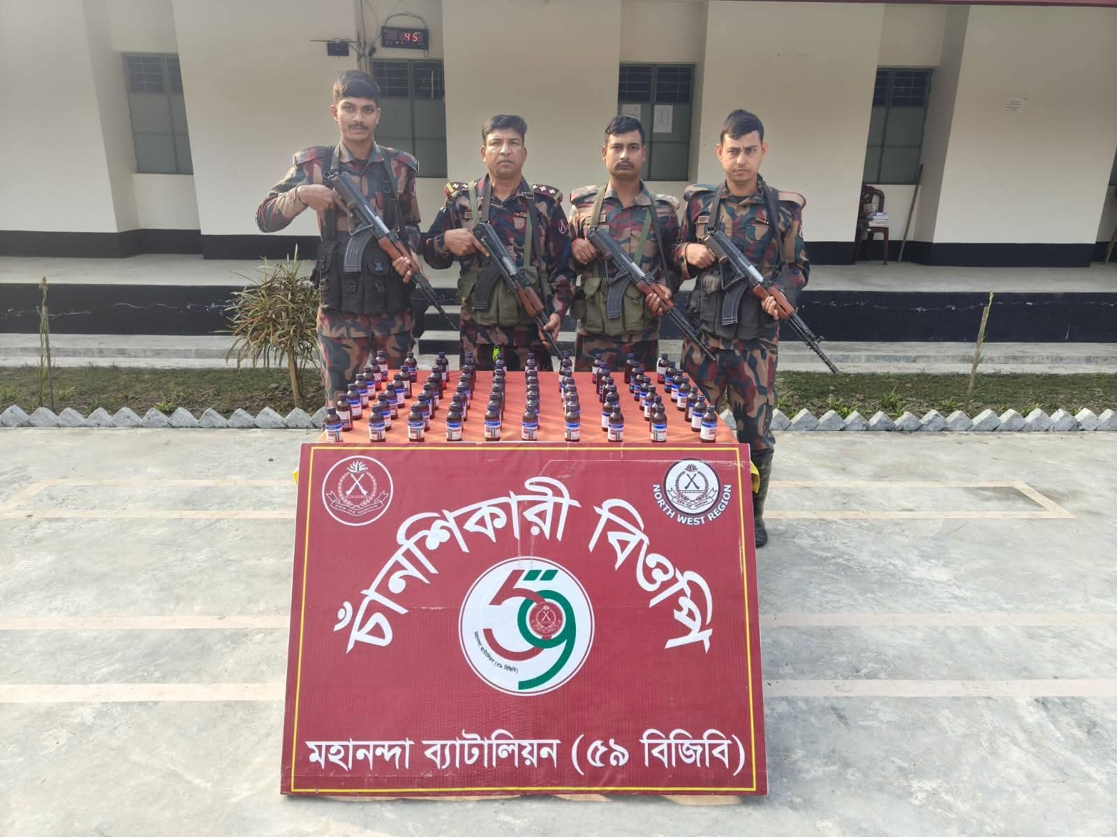 ভোলাহাট সীমান্তে মধ্যরাতে ৫৯ বিজিবি’র অভিযান বিপুল পরিমাণ ভারতীয় নেশাজাতীয় সিরাপ আটক