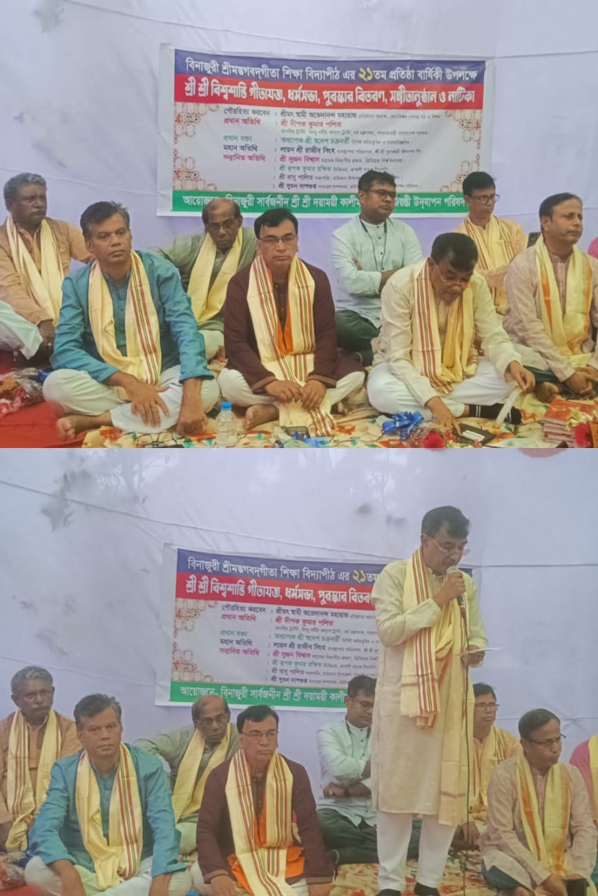 গত ১৯ ও ২০ মার্চ আয়োজিত এ অনুষ্ঠানের সূচনায় মঙ্গল প্রদীপ প্রজ্জ্বলনের মাধ্যমে কর্মসূচির উদ্বোধন করা হয়। অনুষ্ঠানে শ্রীশ্রী গীতাপাঠ প্রতিযোগিতা ও কুইজ পরীক্ষা অনুষ্ঠিত হয়। প্রতিযোগিতাগুলো পরিচালনা করেন শ্রীশ্রী শ্যামাকালী গীতা বিদ্যাপীঠের প্রতিষ্ঠাতা কিশোর পালিত এবং বিনাজুরী শ্রীমদ্ভগবদগীতা শিক্ষা বিদ্যাপীঠের প্রশিক্ষক সুবল শীল।