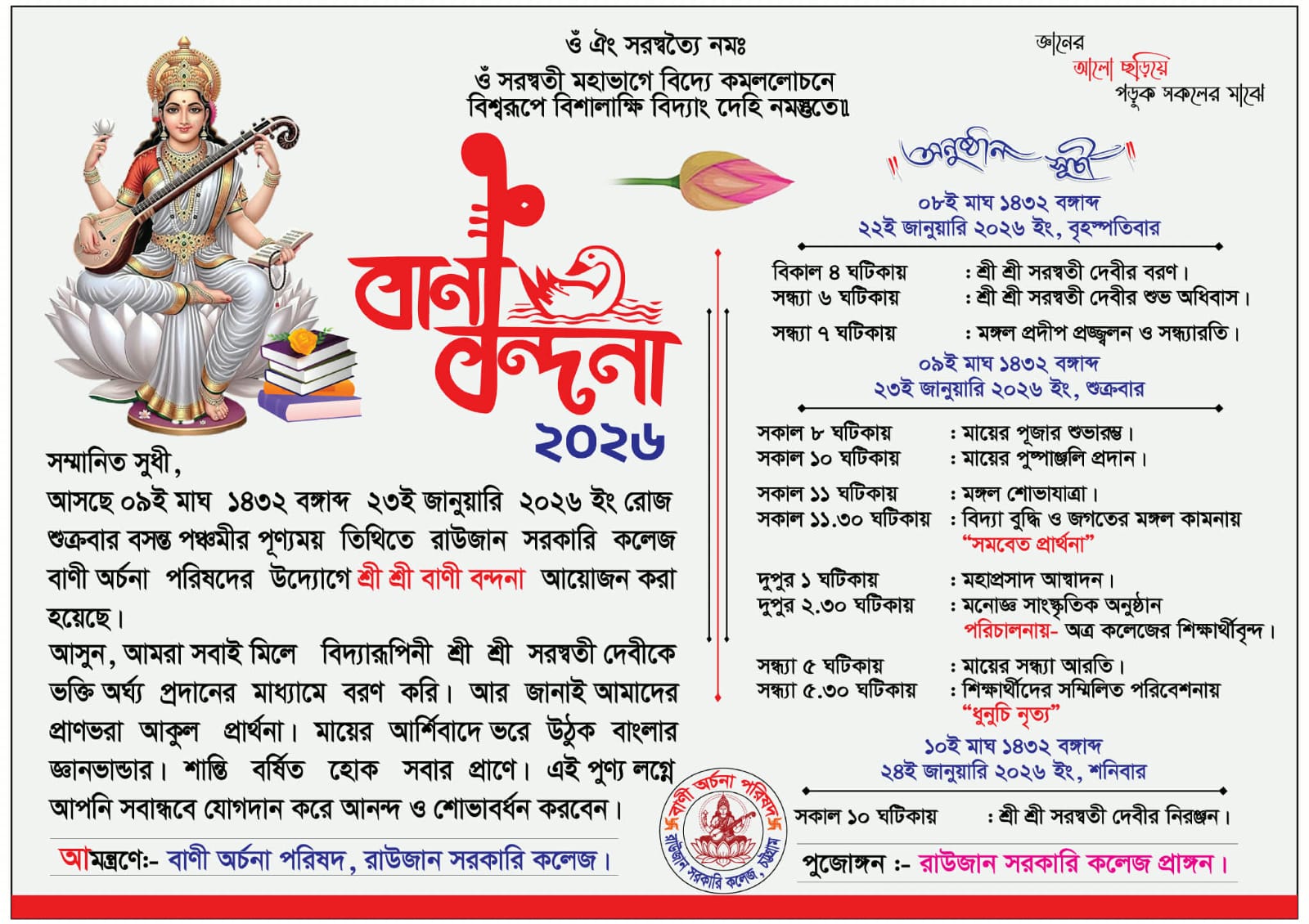 আয়োজনে: বাণী অর্চনা পরিষদ, রাউজান সরকারি কলেজ।