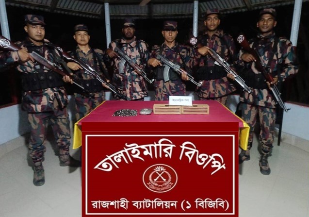 গত ১৬ ফেব্রুয়ারি ২০২৬ তারিখ আনুমানিক ২০৫০ ঘটিকায় রাজশাহী ব্যাটালিয়ন (১ বিজিবি) এর অধীনস্থ তালাইমারী বিওপি’র নিয়মিত টহল দল টহল পরিচালনা সময় গোপন তথ্যের ভিত্তিতে জানতে পারে যে, রাজশাহী জেলার মতিহার থানাধীন ফুলতলা ঘাট নামক এলাকার পদ্মা নদীর চড় হতে কিছু চোরাচালানী মালামাল পাচার হবে।উক্ত তথ্যের ভিত্তিতে বিজিবি’র নিয়মিত টহল দল চোরাচালন বিরোধী অভিযান পরিচালনার জন্য তাৎক্ষনিক মতিহার থানাধীন ফুলতলা ঘাট নামক এলাকার পদ্মা নদীর চরের ঝাউ বনের মধ্যে এ্যাম্বুসে অবস্থান নেয়। কিছু সময় এ্যাম্বুসে থাকার পর, ঝাউ বন হতে কিছুটা দূরে চরের অভ্যন্তরে লোকজনের আনাগোনা শুনতে পায়ে বিজিবি’র টহল দল সুকৌশলে অগ্রসর হলে চোরাকারবারীরা বিজিবি’র উপস্থিতি টের পেয়ে তাদের নিকট থাকা ব্যাগ ফেলে পালিয়ে যায়। পরবর্তীতে বিজিবি’র আভিযানিক দলটি উক্ত ব্যাগ তল্লাশী করে তার মধ্য হতে ১০,০০০ পিস ভারতীয় ইলেকট্রিক রেজিস্টেন্স, ১,০০০ পিস ইলেকট্রিক বাল্ব এবং ৫২৫ পিস ইলেকট্রিক পুশ সুইচ (মালিকবিহীন) জব্দ করতে সক্ষম হয়। জব্দকৃত ইলেকট্রিক মালামাল রাজশাহী শুল্ক গুদামে জমা দেয়ার কার্যক্রম প্রক্রিয়াধীন।এ সময় উপস্থিত ছিলেন প্রেস ও ইলেকট্রনিক মিডিয়ার সাংবাদিকবৃন্দরা ও প্রমুখ।