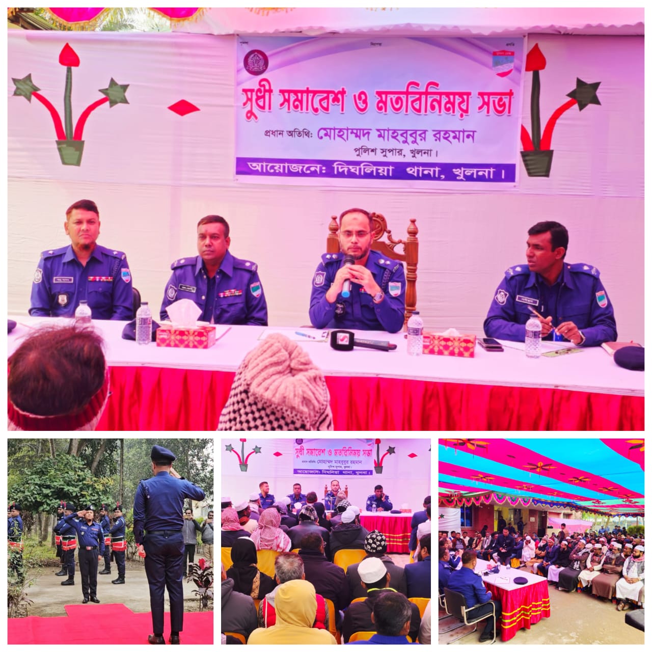 খুলনার দিঘলিয়া থানার উদ্যোগে সামাজিক সম্প্রীতি, শান্তি ও আইনশৃঙ্খলা পরিস্থিতি সুদৃঢ় করার লক্ষ্যে “সুধী সম্প্রীতি সমাবেশ ও মতবিনিময় সভা” অনুষ্ঠিত হয়েছে। আগামী ত্রয়োদশ জাতীয় সংসদ নির্বাচনকে সামনে রেখে আইনশৃঙ্খলা পরিস্থিতির উন্নয়ন ও জনসচেতনতা বৃদ্ধির উদ্দেশ্যে এ সমাবেশের আয়োজন করা হয়।