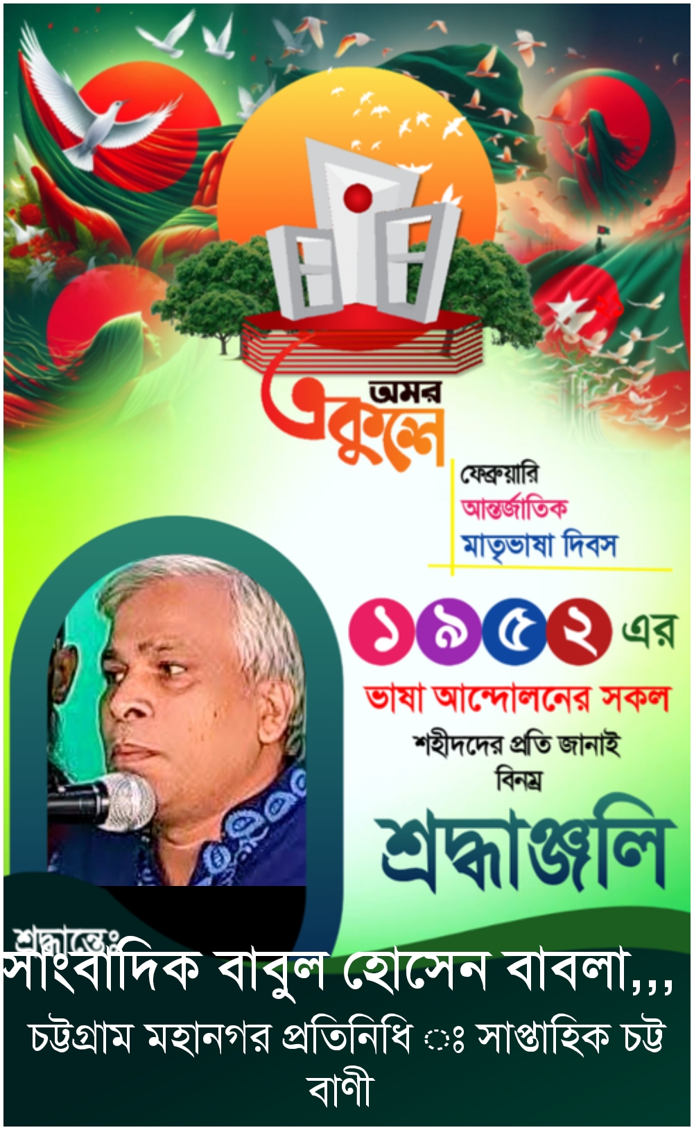 দিবসটি উপলক্ষে দেশবাসী ও বিশ্বের সকল ভাষাভাষী মানুষকে শুভেচ্ছা জানিয়ে সাংবাদিক বাবুল হোসেন বাবলা তার এক বিশেষ বিবৃতি দিয়েছেন। বাণীতে তিনি বলেন, “একুশে ফেব্রুয়ারি আমাদের জাতীয় জীবনের এক অবিস্মরণীয় অধ্যায় এবং গৌরবের প্রতীক। ৫২-র ভাষা আন্দোলন কেবল ভাষার অধিকার প্রতিষ্ঠাই করেনি, বরং বাঙালির স্বাধিকার, গণতন্ত্র ও সাংস্কৃতিক চেতনার ভিত্তিকে মজবুত করেছে। একুশের এই রক্তাক্ত পথ ধরেই মহান মুক্তিযুদ্ধের মধ্য দিয়ে আমরা অর্জন করেছি বাংলাদেশের স্বাধীনতা।”