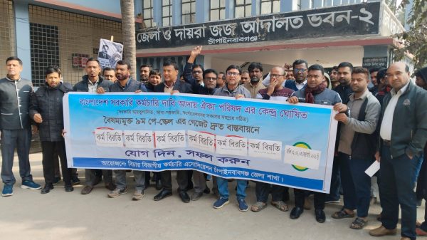 ৯ম পে-স্কেল দ্রুত বাস্তবায়নের দাবিতে চাঁপাইনবাবগঞ্জে বিচার বিভাগীয় কর্মচারীদের কর্মবিরতি