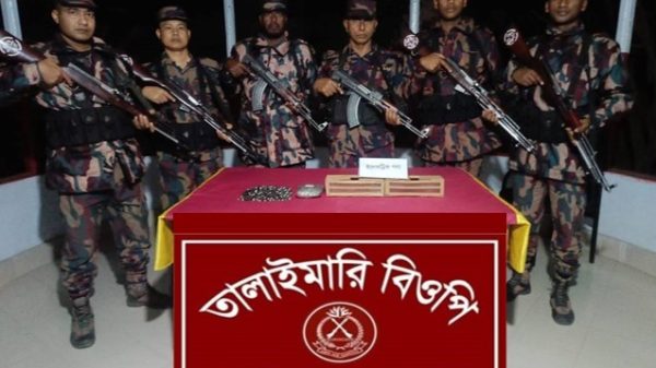 আব্দুল্লাহ আল মুক্তাদির বাঁধন রাজশাহী জেলা প্রতিনিধি গত ১৬ ফেব্রুয়ারি ২০২৬ তারিখ আনুমানিক ২০৫০ ঘটিকায় রাজশাহী ব্যাটালিয়ন (১ বিজিবি) এর অধীনস্থ তালাইমারী বিওপি’র নিয়মিত টহল দল টহল পরিচালনা