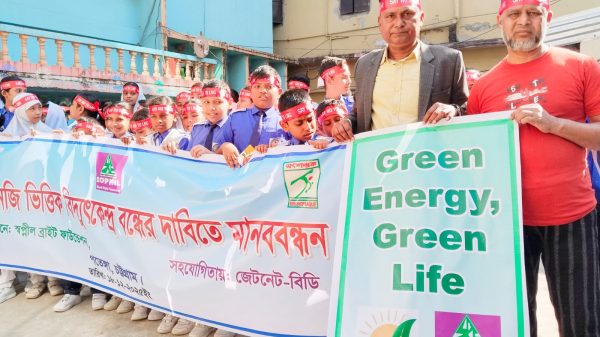 চট্টগ্রাম মহানগর প্রতিনিধি ঃ অদ্য ১৮ ডিসেম্বর ২৫’ দুপুর ১২.৩০ ঘটিকায় মানববন্ধনটি চট্টগ্রাম সিটি কর্পোরেশনের পতেঙ্গা থানার ৩৯নং ওয়ার্ডে ছালেহা উচ্চ বিদ্যালয়ের সামনের রাস্তায় আয়োজন করা হয়। মানবন্ধনে ছালেহা