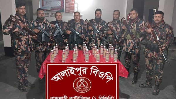 আব্দুল্লাহ আল মুক্তাদির বাঁধন রাজশাহী জেলা প্রতিনিধি ঃ গত ২২ ডিসেম্বর ২০২৫ তারিখ রাত আনুমানিক ১৯৪৫ ঘটিকায় রাজশাহী ব্যাটালিয়ন (১ বিজিবি) এর অধীনস্থ আলাইপুর বিওপি’র বিশেষ আভিযানিক দল গোপন