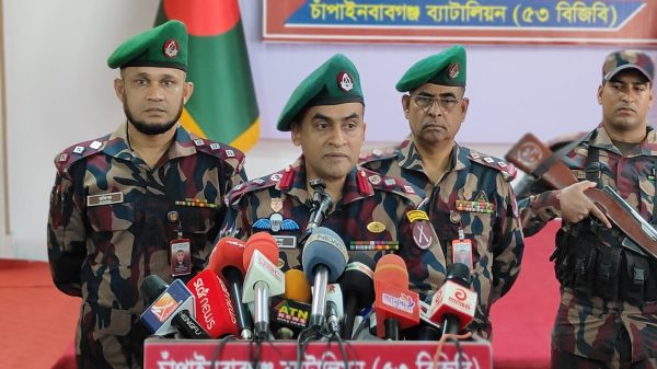 মাহিদুল ইসলাম ফরহাদ চাঁপাইনবাবগঞ্জ জেলা প্রতিনিধি সাম্প্রতিক সময়ে দেশের বিরাজমান পরিস্থিতিতে আইন – শৃঙ্খলা নিয়ন্ত্রণে চাঁপাইনবাবগঞ্জ ব্যাটালিয়ন ৫৩ বিজিবি কতৃক সীমান্তের দায়িত্বপূর্ণ এলাকায় বিশেষ টহল, অতিরিক্ত চেকপোস্ট স্থাপন