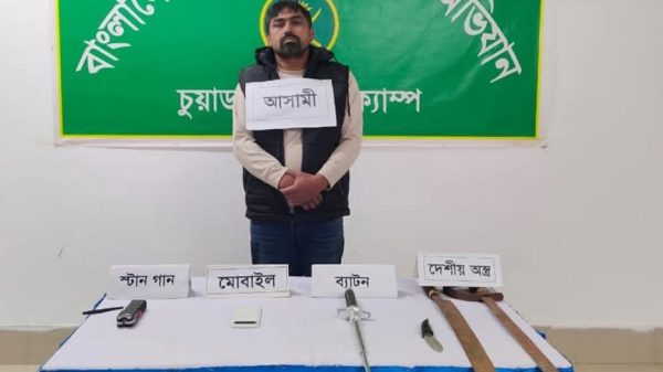 চুয়াডাঙ্গা প্রতিনিধিঃ বায়েজিদ জোয়ার্দার অদ্য ১৪ ডিসেম্বর ২০২৫ ইং ভোরে চুয়াডাঙ্গার অস্থায়ী সেনা ক্যাম্পের মেজর সালমান হক (৩৬ এডি)–এর নেতৃত্বে একটি যৌথ অভিযান দল চুয়াডাঙ্গা পৌর এলাকার শেখপাড়ায়