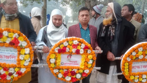 আশেকে এলাহী শিবলী – ধুনট (বগুড়া) প্রতিনিধি : মহান বিজয় দিবস উপলক্ষে ধুনট উপজেলা প্রেসক্লাবের উদ্যোগে শহীদ মিনারে পুষ্পস্তবক অর্পণের মাধ্যমে ১৯৭১ সালের মহান মুক্তিযুদ্ধে আত্মোৎসর্গকারী বীর শহীদদের প্রতি
