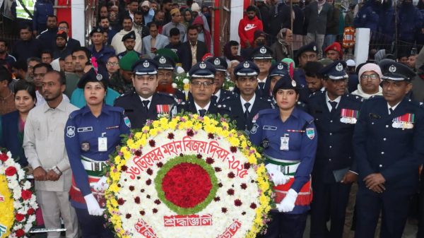 চুয়াডাঙ্গা প্রতিনিধিঃ বায়েজিদ জোয়ার্দার মহান বিজয় দিবস উপলক্ষে চুয়াডাঙ্গা শহীদ হাসান চত্বরে অদ্য ১৬ ডিসেম্বর ২০২৫ইং সকাল ০৬:৩০ ঘটিকায় ১৯৭১ সালে মহান মুক্তিযুদ্ধে অংশগ্রহণকারী দেশের তরে অকাতরে জীবন