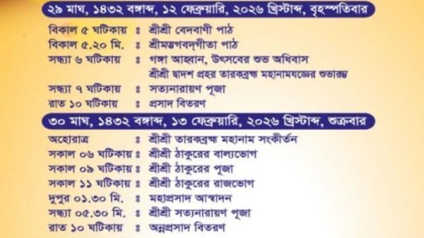 রাউজান এর শ্রীশ্রী রামঠাকুর আশ্রমের উদ্যোগে ঠাকুর রামচন্দ্রদেব এর ১৬৬ তম আবির্ভাব ও স্মরণ উৎসব শুরু রাউজান, চট্টগ্রাম (প্রতিনিধি): চট্টগ্রামের রাউজানের চিকদাইর গ্রামে সত্য, শুদ্ধতা ও মানবকল্যাণের মহামন্ত্রে উদ্ভাসিত ঐতিহাসিক